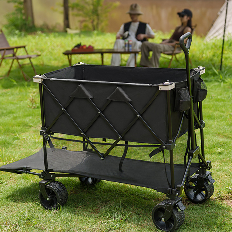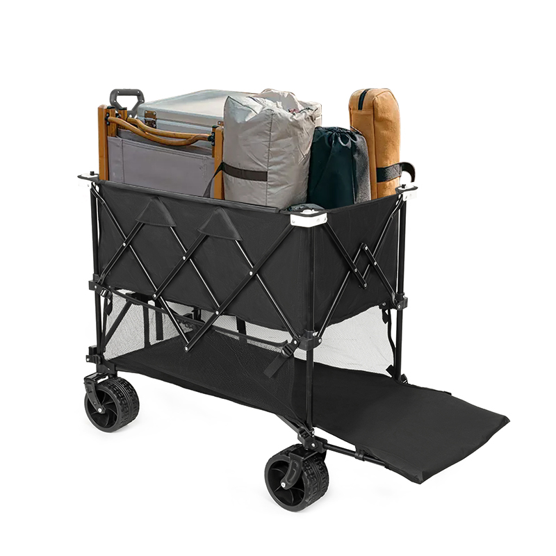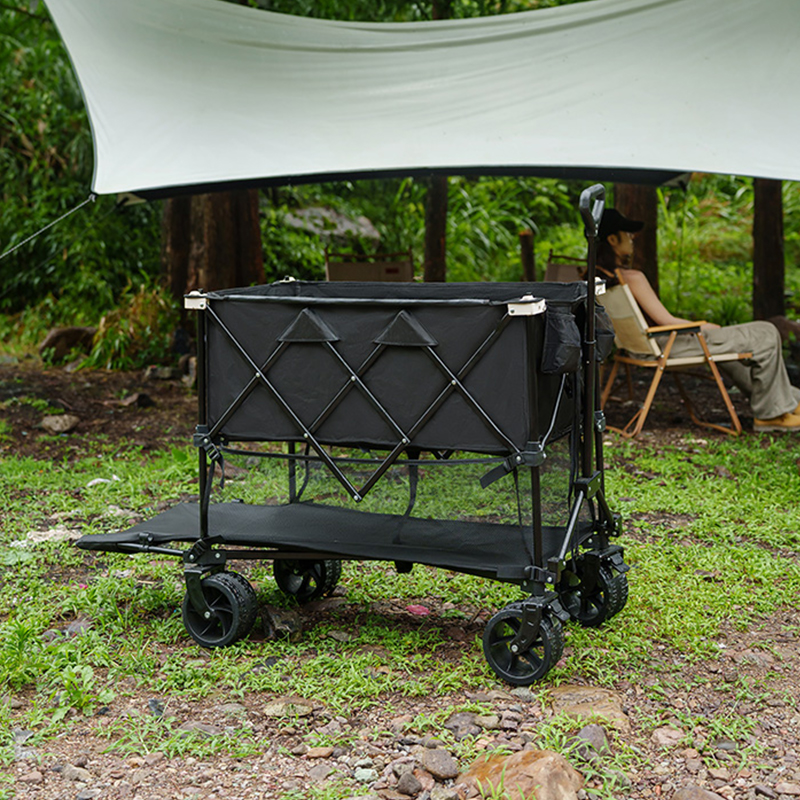 二段構造でたっぷり積める折りたたみ式ワゴンです。