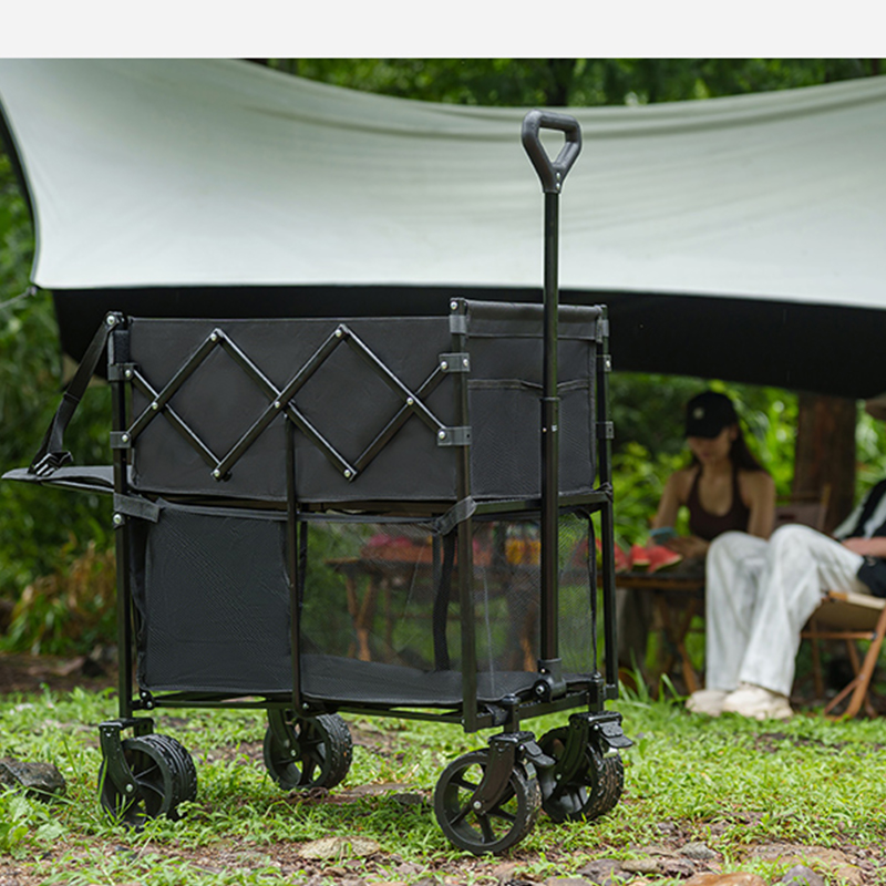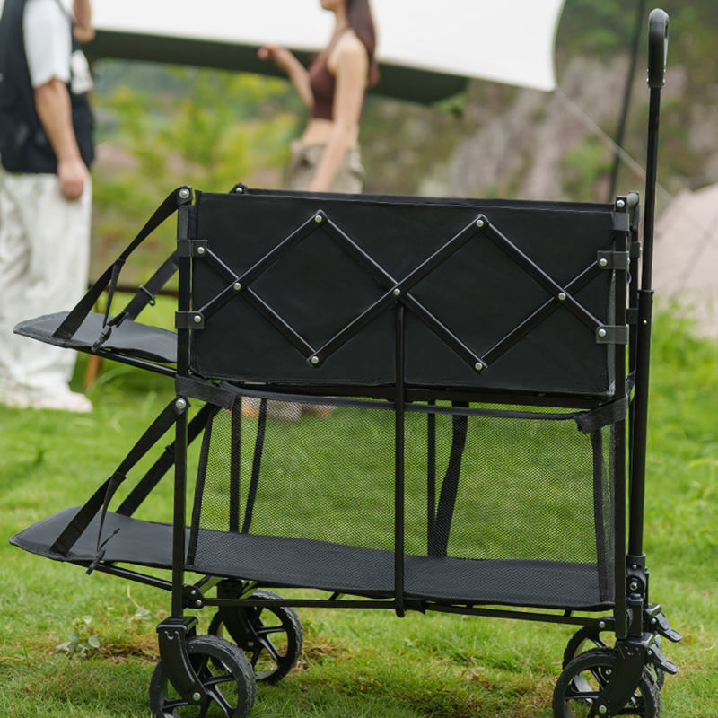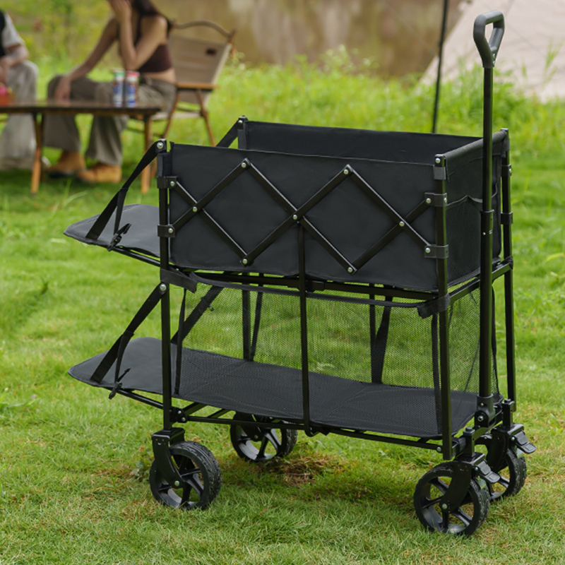 上段・下段に荷物を分けて載せられ、キャンプやピクニックの大量のギアを一度に運べる実用的な設計。