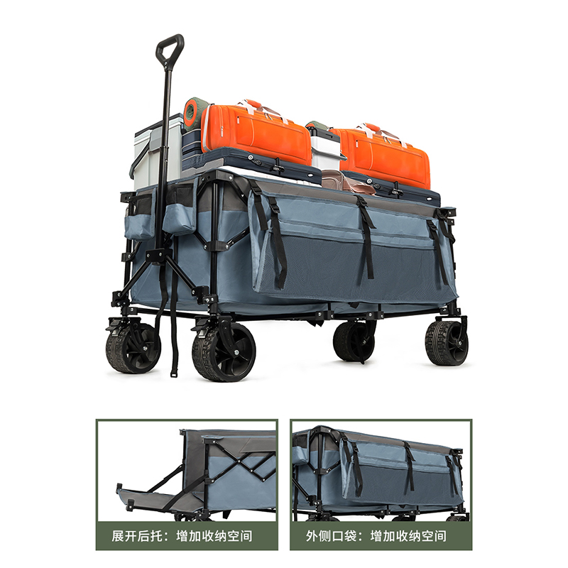 四方向折りたたみ式ダブルデッキワゴンは、たくさんのギアをまとめて运べる頼れるアウトドアワゴンです。上下2段のデッキ構造で、荷物の仕分けもスムーズ。补强スチールフレームと丈夫な素材を使い、アウトドアでのハードな使用にも応えます。キャンプやビーチ、イベントなど幅広いシーンで使いやすく、折りたためばコンパクトに収納できます。